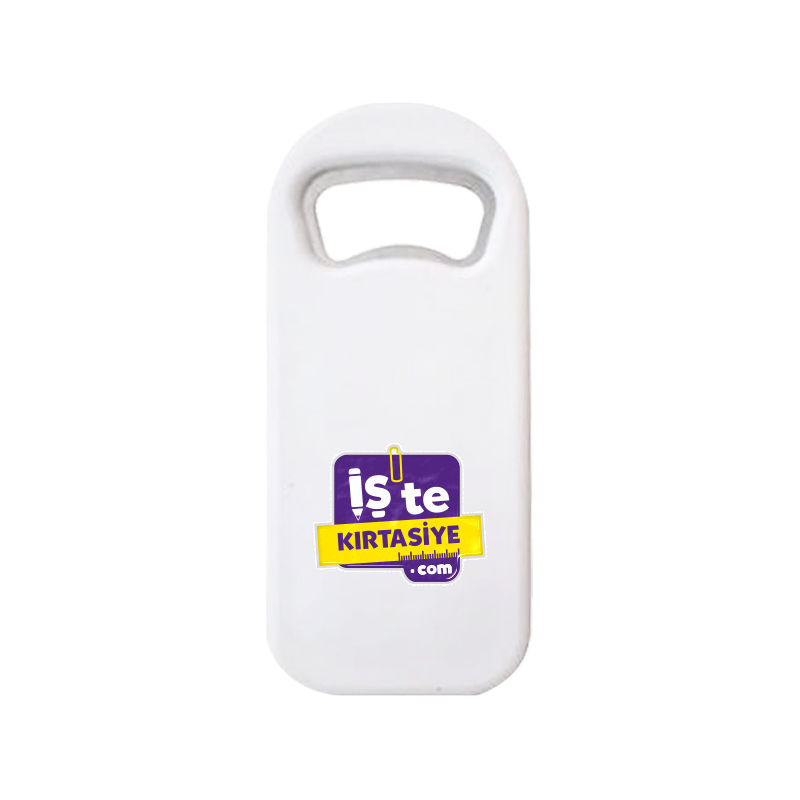 Baskılı dikdörtgen magnetli açacak, bir yandan şişe açacağı olarak işlev görürken diğer yandan mıknatıslı arka yüzeyi sayesinde buzdolabı ve metal yüzeylerde kalıcı olarak yer alır. Kurumsal promosyon çalışmaları, etkinlik hatırası veya kişisel hediye olarak oldukça tercih edilen, şık ve kullanışlı bir ürün alternatifidir. Üzerine logo, isim veya özel mesaj baskısı yapılarak marka görünürlüğü ve kalıcılığı artırılabilir.