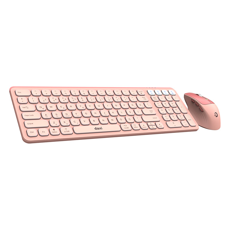 Daxi MK-390 Kablosuz Klavye Mouse Set, şık pembe tasarımı ve modern teknolojisi ile hem estetik hem de fonksiyonel bir kullanım sunar. Bluetooth ve 2.4GHz kablosuz bağlantı desteği sayesinde farklı cihazlarla kolayca eşleşebilir ve kesintisiz performans sağlar. Q klavye düzeni, hızlı ve konforlu yazım deneyimi sunar. Ergonomik tasarımı sayesinde uzun süreli kullanımlarda el ve bilek konforunu destekler. Kablosuz yapısı, masaüstünde düzen sağlayarak kablo karmaşasını ortadan kaldırır. Tak-çalıştır özelliği ile hızlı kurulum imkânı sunar ve teknik bilgi gerektirmez. Dayanıklı malzeme yapısı sayesinde uzun ömürlü kullanım sağlar.