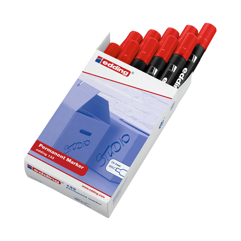 Edding E-133 Permanent Marker Kesik Uç Kırmızı (10 Adet)
