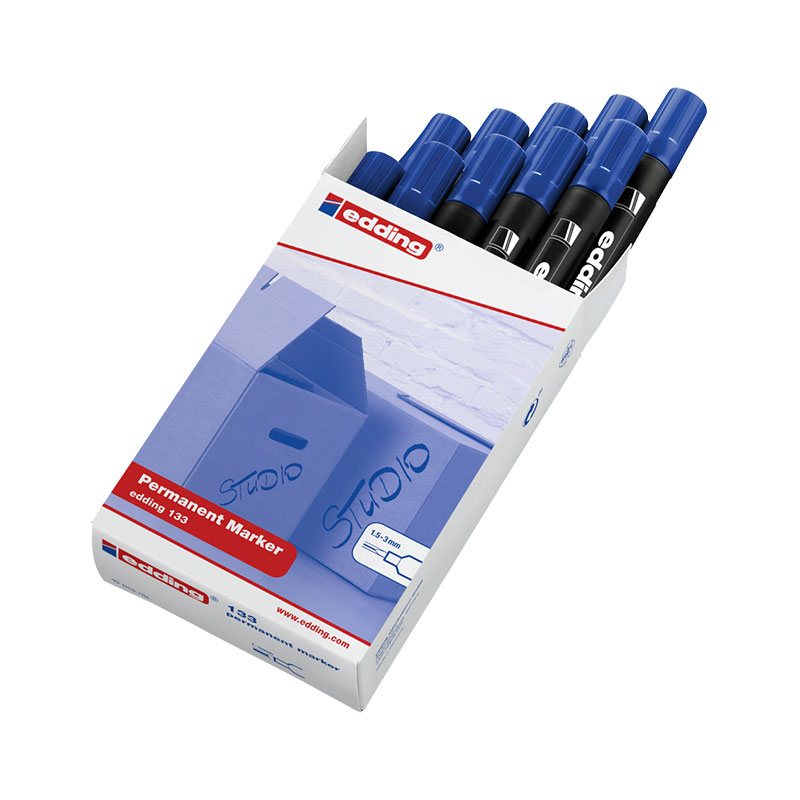 Edding E-133 Permanent Marker Kesik Uç Mavi (10 Adet)