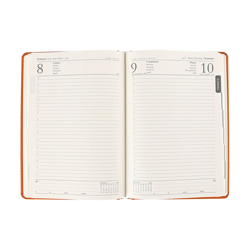 Bu ajanda, özellikle yoğun çalışma temposuna sahip bireyler için mükemmel bir zaman yönetimi aracıdır. Her gün için ayrılmış sayfalar sayesinde detaylı planlamalar, notlar, randevular ve yapılacaklar listesi rahatça tutulabilir. Termo deri kapak, hem şıklık hem de dayanıklılık açısından avantaj sağlar; çantada taşınsa dahi deforme olmaz. Geniş ebatı sayesinde sadece yazı değil, çizim ve tablo gibi içeriklere de yer verilebilir. Kaliteli ivory kağıt, mürekkebin yayılmasını engelleyerek pürüzsüz bir yazım deneyimi sunar. Spiralli değil, dikişli yapısı sayesinde kopma ya da sayfa dağılması gibi sorunlar yaşanmaz. Ajanda, profesyonel bir görünüm sunarak iş dünyasında prestijli bir izlenim bırakır. Yıl boyunca tüm verilerinizi tek bir yerde toplamak isteyen herkes için vazgeçilmez bir araçtır.