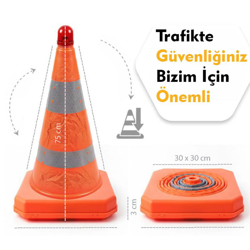 Katlanır Trafik Konisi Çift Reflektif 75 Cm Işıklı Özellikleri