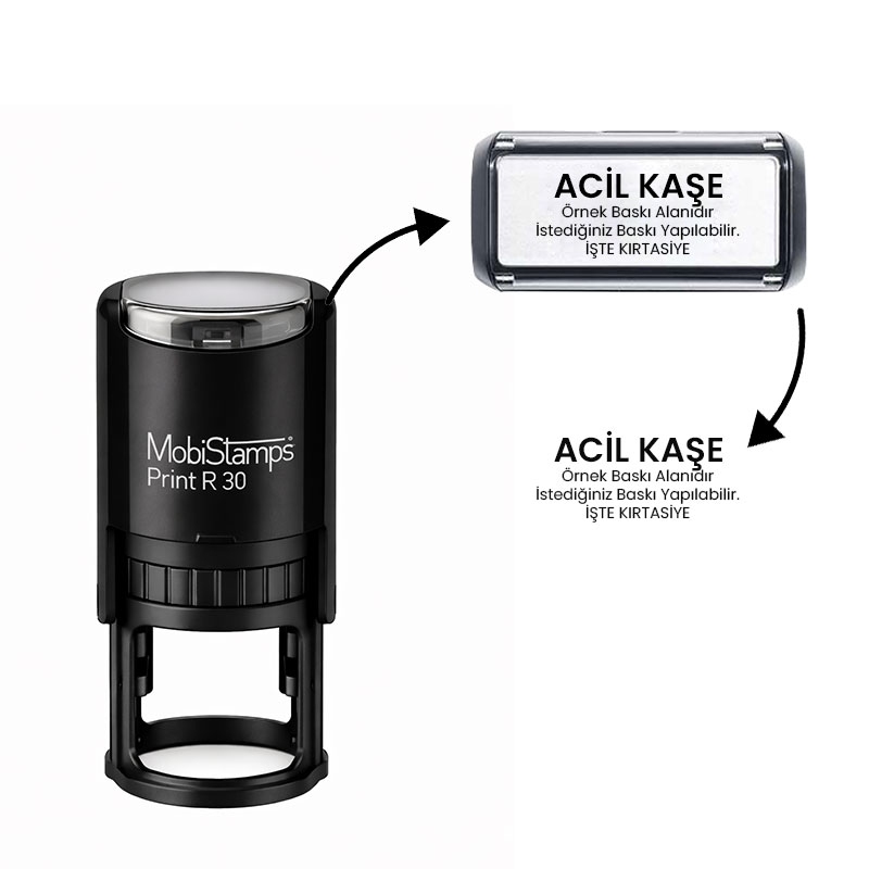 Mobi Stamps R-30 Otomatik Yuvarlak Kaşe 30 mm Siyah Keçeli