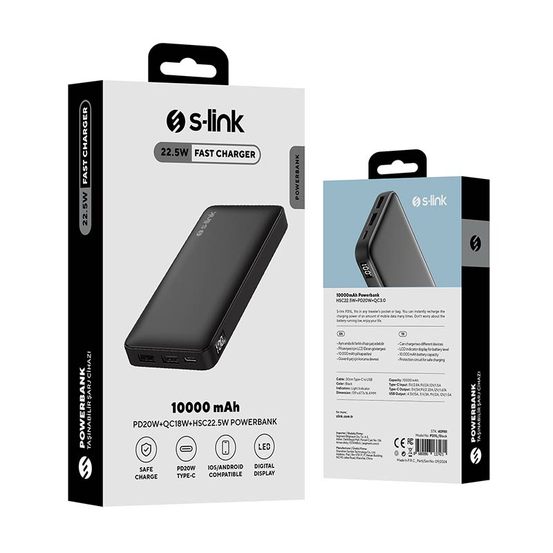 S-link P311L 10000mAh LCD Taşınabilir Şarj Cihazı Powerbank Siyah
