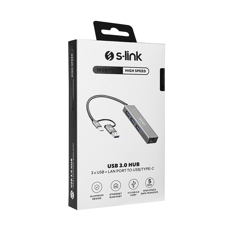 S-link SW-U332 Type-C - USB3.0 3 Port Ethernet Adaptör resmi